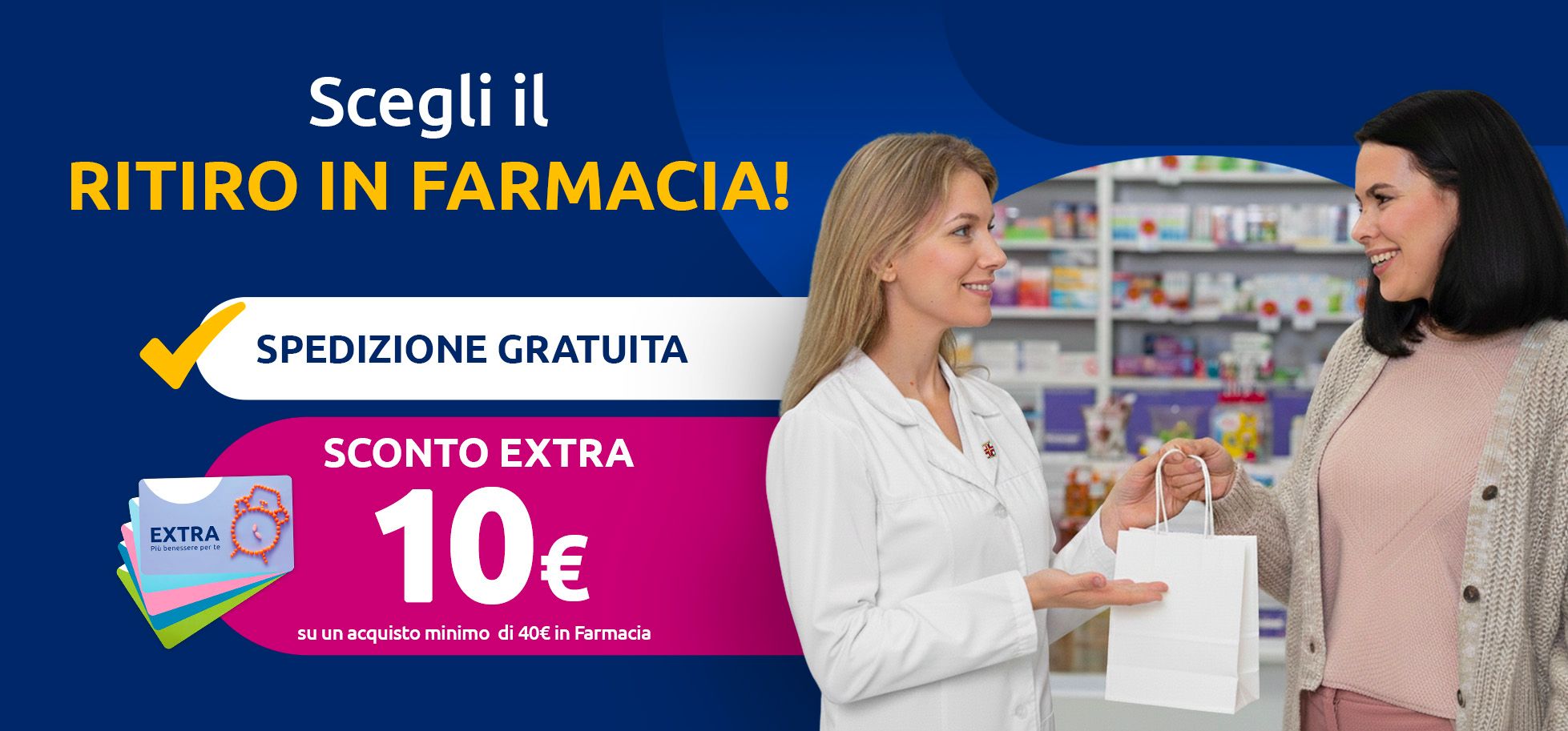 Solo per te, se scegli il Click&Collect ricevi un coupon da 10€ da usare su un acquisto in Farmacia minimo di 40€.