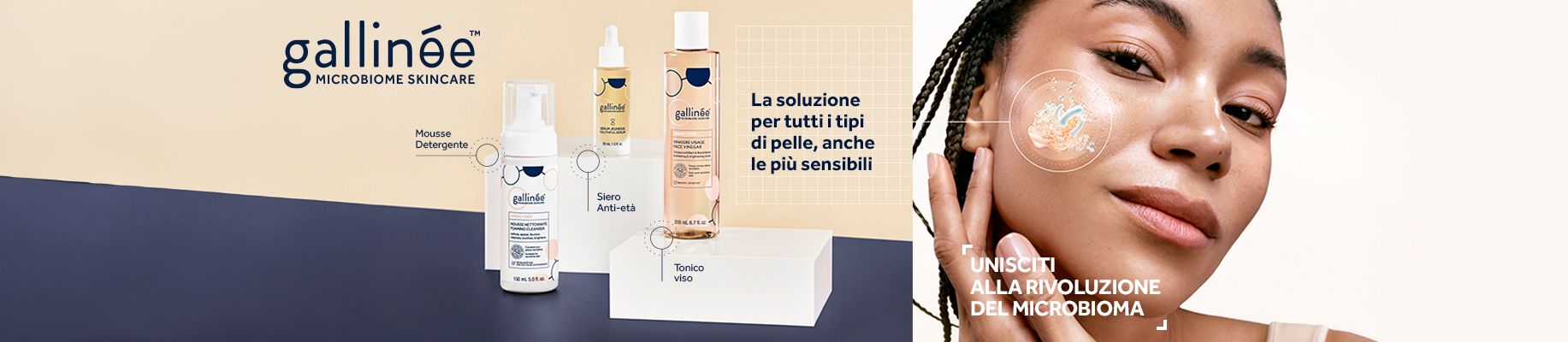 Il microbioma della tua pelle è un ecosistema delicato composto da batteri buoni che formano uno strato protettivo sulla tua pelle. Gallinée è il prim...